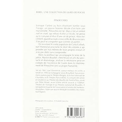 Lorsque l’arbre au bois étonnant tombe sous l’orage, l’homme pauvre et généreux décide d’en faire un pantin. Pinocchio est né. Mais c’est un enfant naïf et cruel, qui rêve d’une vie de prince. Après Cendrillon (Babel n° 1182) et Le Petit Chaperon rouge (Babel n° 1246), Joël Pommerat revisite cet autre conte populaire et soulève les questions de la paternité, de la pauvreté et de la liberté.